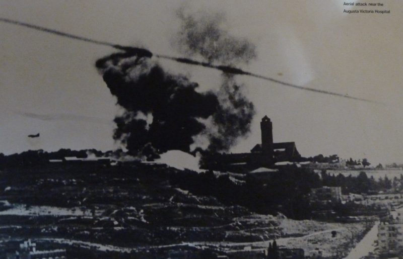 An Israeli airstrike near the Augusta-Victoria Hospital (Wikipedia)