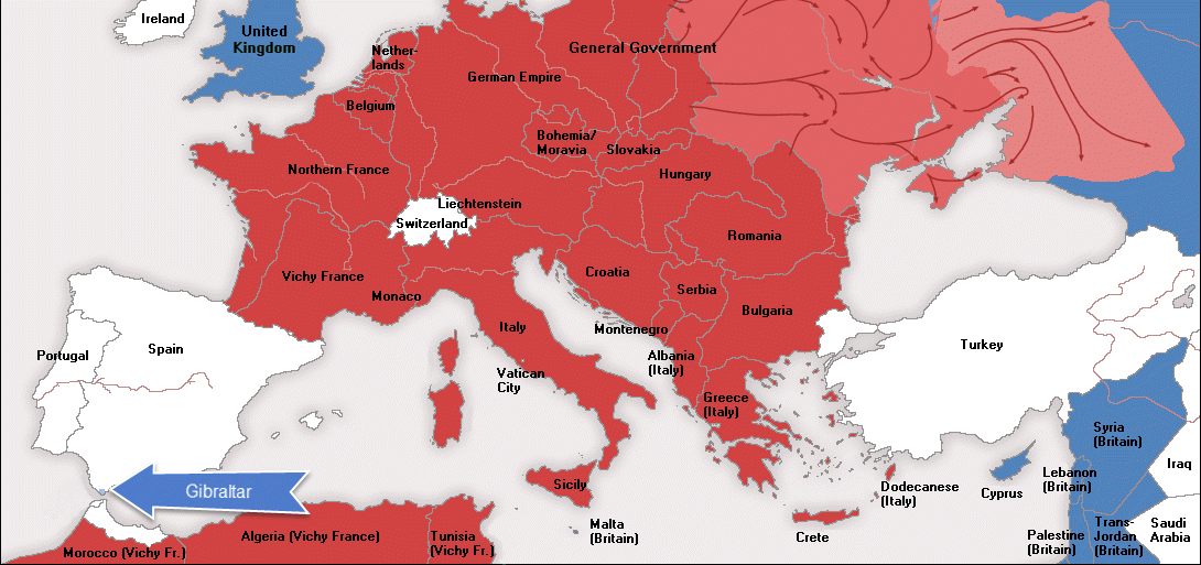 Even though Spain remained neutral during the First World War, it was expected they would come in on the side of the Axis after all the help Hitler had given General Franco in the Spanish Civil War. However, despite pleading and perhaps even begging, Franco remained adamant. He would not join the Axis and would not even allow the Germans to pass through his country (as the Swedes did).